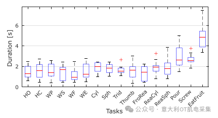 本文發(fā)布了一個多模態(tài)上肢運動數(shù)據(jù)集“Reach&Grasp”,包含10名健康受試者在執(zhí)行16種任務(wù)時的多種信號記錄。任務(wù)包括手部開合、腕部屈伸/旋前旋后、三指抓握、圓柱/球形抓握、以及復(fù)雜的前伸抓取動作(如倒水、擰瓶蓋、模擬進食等)。