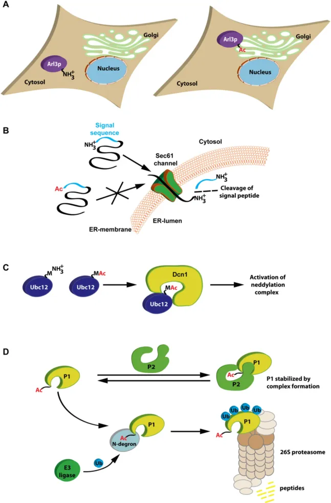 如下圖所示,N端乙;谡{(diào)節(jié)蛋白定位和穩(wěn)定性中發(fā)揮作用。