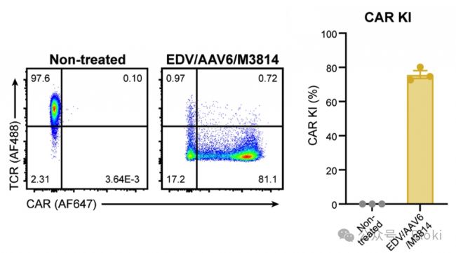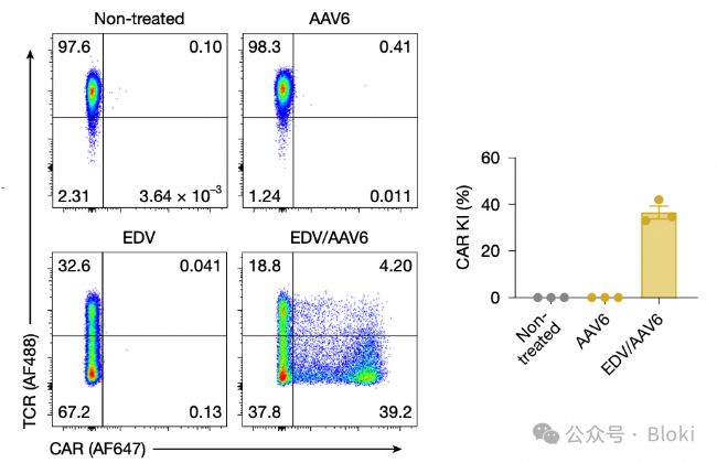 EDV+AAV干掉TCR,介導(dǎo)CAR表達(dá)(右下象限)