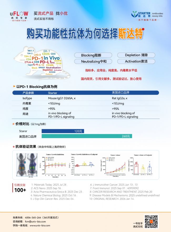 現(xiàn)在,優(yōu)寧維專屬供應的斯達特(Starter)功能性抗體來了!憑借硬核品質(zhì)、超高性價比、權威驗證和現(xiàn)貨速發(fā)的優(yōu)勢,直接解決流式實驗所有痛點,成為萬千科研人的首選!