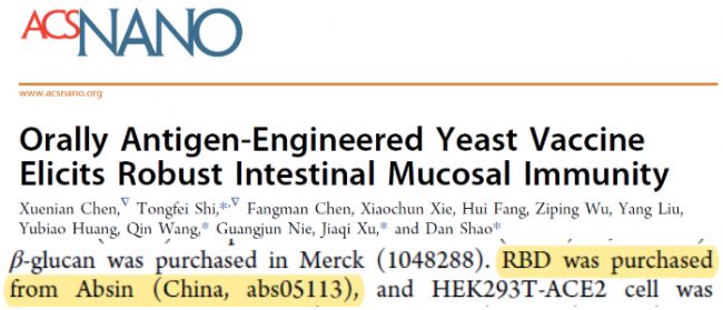 在全球感染性疾病防控領(lǐng)域,黏膜免疫因其能在病原體入侵的第一道防線建立保護(hù)屏障,成為疫苗研發(fā)的核心方向之一。近期,一項發(fā)表于《ACS Nano》的研究(doi:10.1021/acsnano.4c14690)成功開發(fā)出抗原錨定型酵母口服疫苗,為黏膜疫苗的臨床轉(zhuǎn)化提供了全新方案。值得關(guān)注的是,Absin 的重組 SARS-CoV-2 RBD 蛋白在該研究中作為關(guān)鍵實驗材料,為疫苗的免疫原性驗證等核心環(huán)節(jié)提供了重要支持。