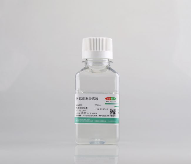 分離 PBMC 的經(jīng)典方法是密度梯度離心法,核心試劑就是 Ficoll 分離液(產(chǎn)品編號:abs930)。