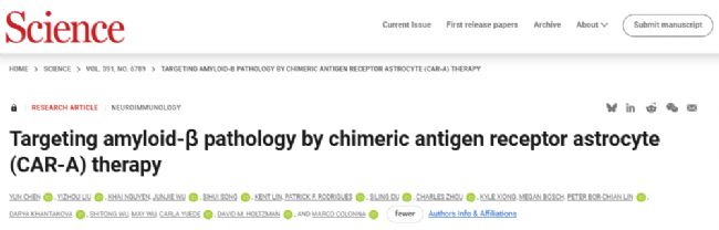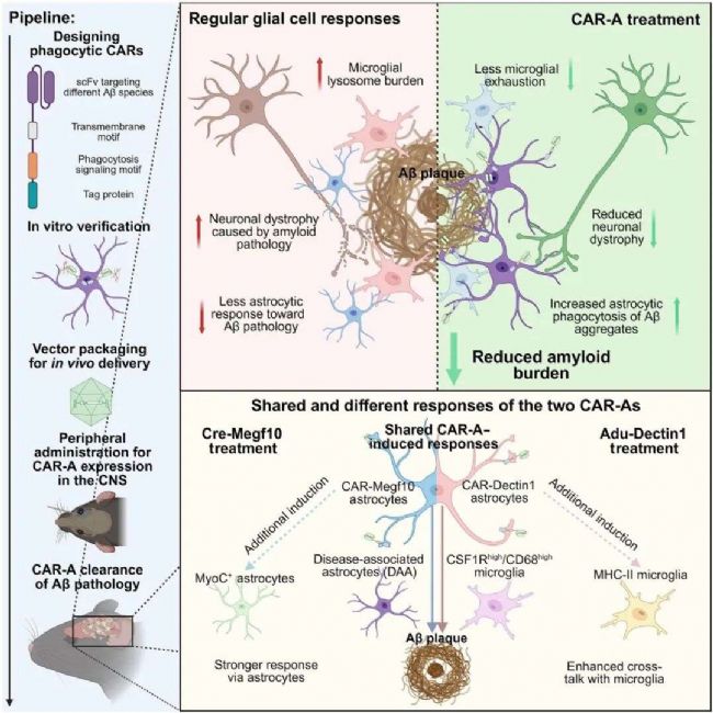 CAR-A 技術(shù)在阿爾茨海默病相關(guān)模型中對淀粉樣蛋白病變的治療應(yīng)用(來源:Science)