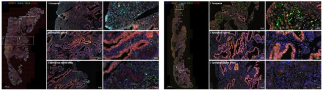 | 產(chǎn)品應(yīng)用場(chǎng)景及對(duì)應(yīng)原圖 | 1. 巨噬細(xì)胞亞型定位:同時(shí)標(biāo)記 CD14(巨噬細(xì)胞標(biāo)志物)、CCR2(MDMs 標(biāo)志物)、IGFBP1(蛻膜分區(qū)標(biāo)志物)和 HLA-G(滋養(yǎng)層細(xì)胞標(biāo)志物),明確 CCR2⁺MDMs 在蛻膜致密層的異常富集(圖 3J-K); 2. 趨化因子與受體共定位:檢測(cè) vWF(血管內(nèi)皮標(biāo)志物)與 CCL2、ACKR1 的共表達(dá),驗(yàn)證血管內(nèi)皮細(xì)胞對(duì) CCL2 的聚集作用(圖 8A、G); 3. 炎癥因子表達(dá)驗(yàn)證:定量分析蛻膜組織中 IFN-γ 和 TNF-α 的表達(dá)水平,為 ACKR1 上調(diào)機(jī)制提供依據(jù)(圖 8K-L)。 |
