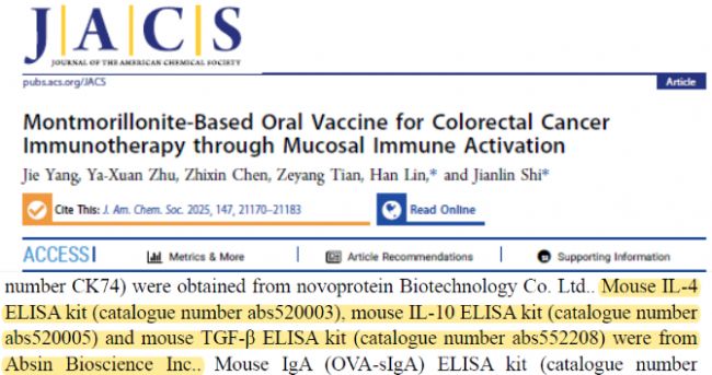該研究創(chuàng)新性地將蒙脫土的黏膜黏附特性與 Mn²⁺的免疫激活功能相結(jié)合,構(gòu)建了首個基于蒙脫土的口服結(jié)直腸癌疫苗,成功突破傳統(tǒng)疫苗的黏膜免疫激活瓶頸。Absin 作為科研工具服務(wù)商,始終以高品質(zhì)產(chǎn)品助力前沿科研,為腫瘤免疫治療、納米藥物遞送等領(lǐng)域的創(chuàng)新研究提供堅實支撐。