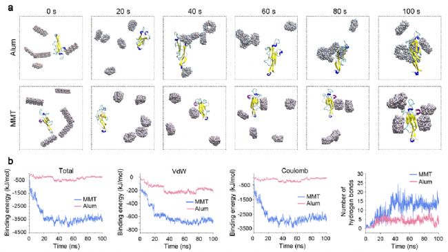 原文圖3:MUC2與疫苗相互作用的分子動力學(xué)模擬