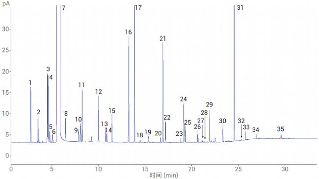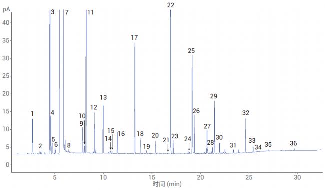 圖 3. 濃香型中國白酒樣品的 GC/FID 色譜圖