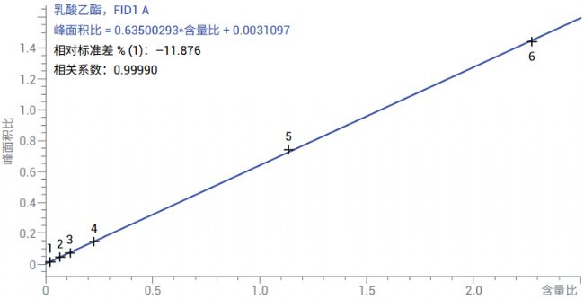 圖 7. 乳酸乙酯校準曲線 (R2 = 0.99985)