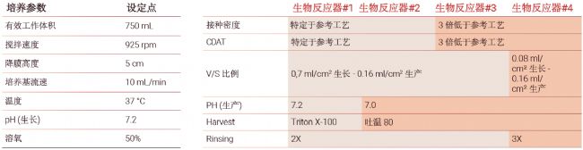 >>沒(méi)有觀察到針對(duì)工藝優(yōu)化而進(jìn)行的變化到對(duì)培養(yǎng)的負(fù)面影響:pH值 (#1:7.2,#2-4:7.0)以及生長(zhǎng)階段體積/表面比降低(# 4降低了2倍)。