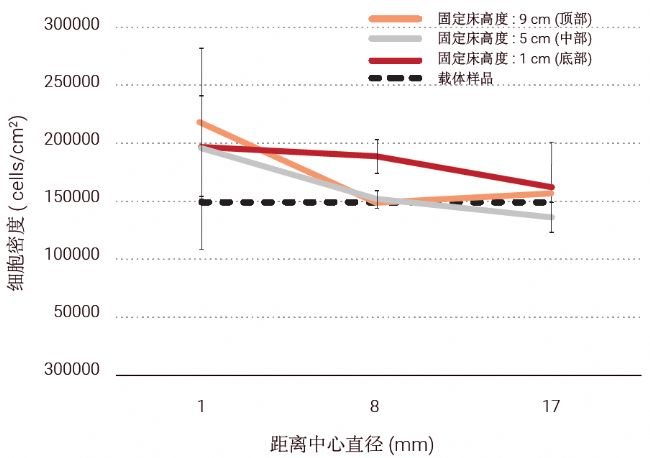 >> HEK293細(xì)胞在固定床中呈均勻的軸向和徑向分布(圖4),使可用于細(xì)胞生長(zhǎng)的表面積得到最佳利用。