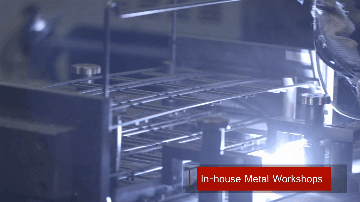 在專用車間生產(chǎn)不銹鋼配件,之后籠架運(yùn)到裝配區(qū),由全自動(dòng)機(jī)械手臂涂上耐高壓滅菌的特質(zhì)油墨。