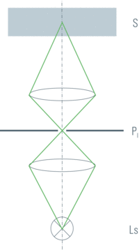 圖1:用于共焦成像的照明。來自光源(Ls)的光聚焦于照明針孔(Pi),然后進入樣品S。