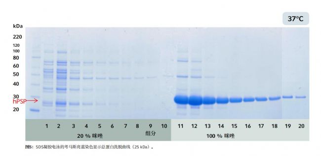 圖5:SDS凝膠電泳的考馬斯亮藍(lán)染色顯示總蛋白洗脫曲線(25 kDa)。