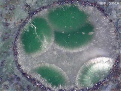 莫高窟壁畫,這塊為什么脫落了?那塊為什么變色了?這塊為什么污染了?通過顯微鏡做一個剖面,就發(fā)現(xiàn)這個上面有一層類似透明狀的帶點棕色液體,初步推測,屬于昆蟲排泄物。