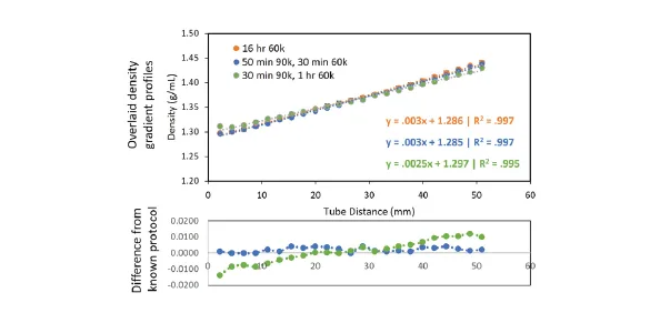 基于 Optima XPN超速離心機對于分段離心步驟設置的支持(在一次運行中運行多個轉(zhuǎn)速步驟),研究團隊最終找到了一種能夠在80分鐘(50+30分鐘)內(nèi)達到密度梯度平衡的優(yōu)化方案,較之前16小時的舊步驟提升了近12倍效率。