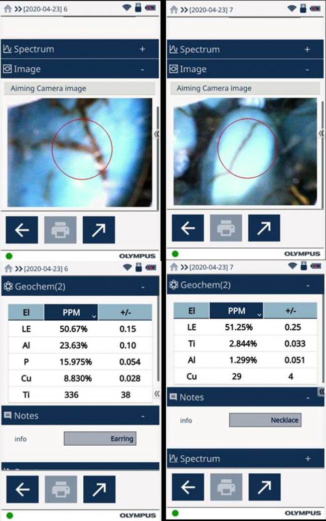 所有這三種元素的含量都揭示了真正的綠松石和仿冒綠松石之間的差異。兩者之間的差異有著天壤之別,而使用奧林巴斯的Vanta手持式XRF分析儀可以非常容易地了解這些差別。