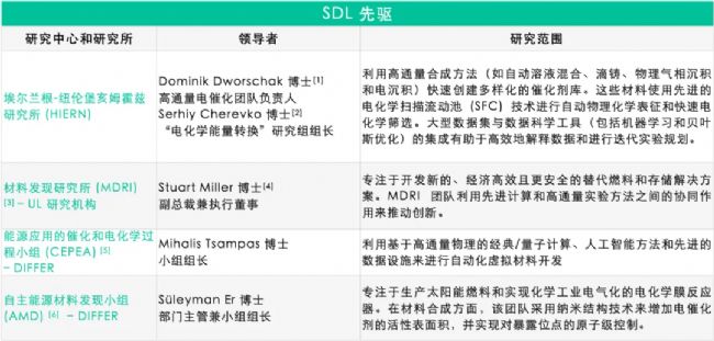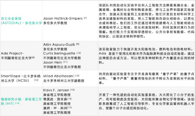 全球有許多 SDL 的先驅(qū)研究者。盡管尚處于開(kāi)發(fā)初期,但一些 SDL 已經(jīng)取得了令人印象深刻的成果,這些成果不僅加速了材料的發(fā)現(xiàn),還簡(jiǎn)化了研究流程,大大推動(dòng)了新能源材料的開(kāi)發(fā)。這里列舉了一些多邊合作涉及的研究機(jī)構(gòu)、高校和行業(yè)領(lǐng)導(dǎo)者,他們正在努力推動(dòng)這一領(lǐng)域的創(chuàng)新。(其中,標(biāo)記的組都在和 VSParticle 合作)