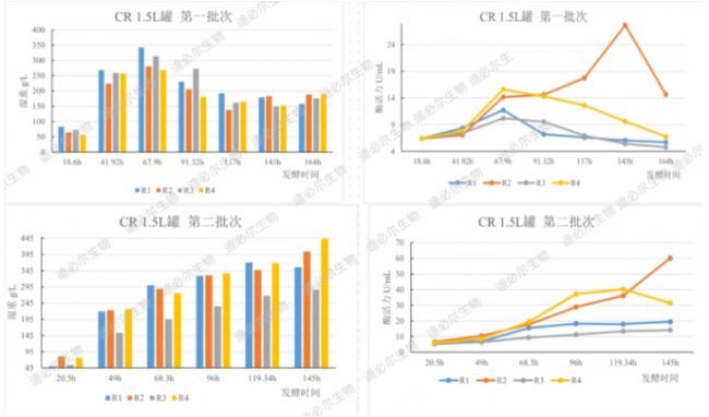 首先在Intelli-Ferm mini 5L平行生物反應(yīng)器進(jìn)行預(yù)實(shí)驗(yàn),并根據(jù)結(jié)果調(diào)整補(bǔ)料策略和培養(yǎng)基配方。之后在4聯(lián)CloudReady 1.5L云平臺(tái)生物反應(yīng)器進(jìn)行兩批次正式實(shí)驗(yàn)(圖2)。