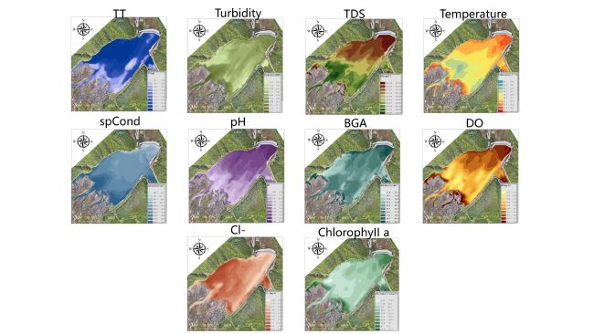 可精準(zhǔn)輸出葉綠素、藍(lán)綠藻、濁度、電導(dǎo)率、溫度等關(guān)鍵水質(zhì)參數(shù)的空間分布圖,直觀展現(xiàn)全域水質(zhì)指標(biāo)差異;