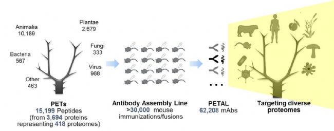同時,研究團(tuán)隊還在超過10個不同物種(涵蓋病毒、細(xì)菌、真菌、植物及動物)中成功驗證了PETAL平臺可用于批量開發(fā)物種特異性抗體。該結(jié)果表明,PETAL技術(shù)有望為目前缺乏高效抗體研究工具的非模式物種,提供一種規(guī);、系統(tǒng)性的抗體開發(fā)解決方案。
