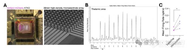 圖 1|3Brain 3D HD‑MEA驗(yàn)證脊髓三叉神經(jīng)核→丘腦誘發(fā)‑響應(yīng)。