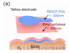 為了提升透氣性,研究者嘗試了微穿孔、激光打孔、使用多孔基底(如紙張、織物、納米纖維網)等方法。然而,這些方法往往增加了制造復雜度,限制了規(guī);瘧。近年來,基于PEDOT:PSS的聚合物紋身電極因其超薄、貼合、自粘附、可印刷等優(yōu)點受到廣泛關注。已有研究表明其在電生理信號采集方面表現優(yōu)異,但其透氣性尚未被系統(tǒng)研究。