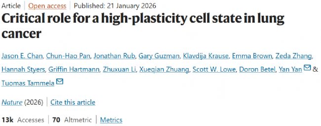 1月22日,華中農(nóng)業(yè)大學(xué)顏彥教授團(tuán)隊(duì)聯(lián)合美國紀(jì)念斯隆-凱特琳癌癥中心Tuomas Tammela教授團(tuán)隊(duì),在國際知名期刊Nature發(fā)表題為“Critical role for a high-plasticity cell state in lung cancer”的重磅研究成果。