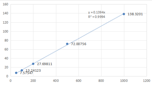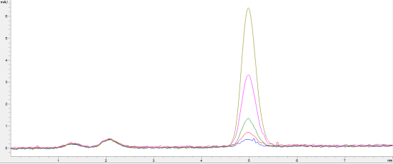 線性分別精密吸取0.05μg/mL、0.1μg/mL、0.2μg/mL、0.5μg/mL、1μg/mL濃度的對照品溶液,注入液相色譜儀,測定峰面積,以峰面積為縱坐標,濃度為橫坐標,繪制標準曲線。