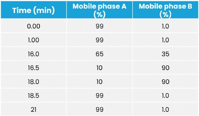 采用ExionLC色譜系統(tǒng)進(jìn)行分離,流速為0.3 mL/min,液相色譜梯度見(jiàn)Table 1。