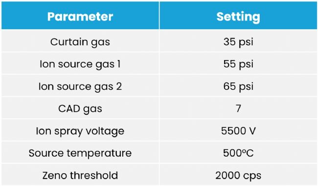 采用配備TurboV離子源的ZenoTOF 7600系統(tǒng),在正離子模式運(yùn)行Zeno MRM