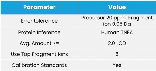 Table 4. PEAKS Studio MRMHR peptide quantification parameters.