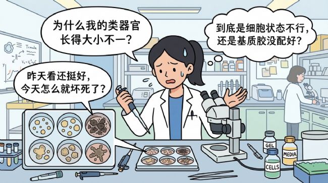 “為什么我的類器官長得大小不一?”“昨天看還挺好,今天怎么就壞死了?”“到底是細胞狀態(tài)不行,還是基質(zhì)膠沒配好?”……這往往是類器官(Organoids)研究者在實驗初期和日常培養(yǎng)中最糾結(jié)的顧慮。
