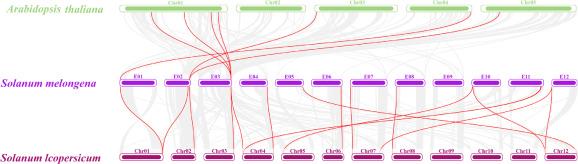 圖5. 擬南芥、番茄和茄子之間BBX基因的共線性關(guān)系