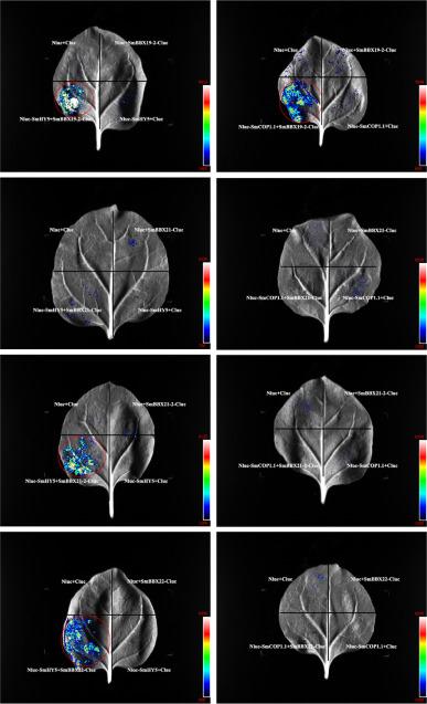 圖10. SmBBXs在煙草葉片中與HY5和COP1相互作用
