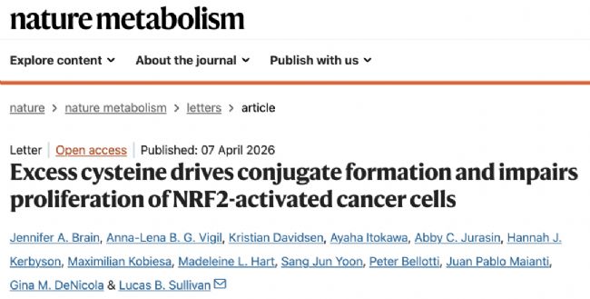 2026年4月,弗雷德·哈欽森癌癥中心的研究團隊在《Nature Metabolism》期刊上發(fā)表了題為“Excess cysteine drives conjugate formation and impairs proliferation of NRF2-activated cancer cells”的研究論文,正式揭開了這一謎題的答案,帶來了癌癥治療領(lǐng)域的重大突破。