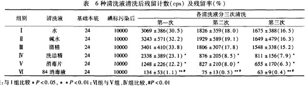6種清洗液清洗后殘留計(jì)數(shù)(cps)及殘留率(%)如下表所示。