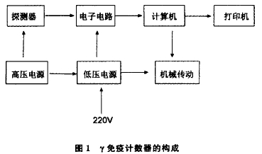 1.1構(gòu)成簡介:免疫計數(shù)器是固體閃爍計數(shù)器的一種,構(gòu)成圖1所示,主要由固體閃爍探測器、電子線路、機械傳動系統(tǒng)、計算機構(gòu)成。