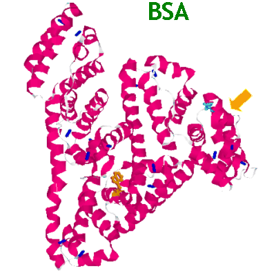 牛血清白蛋白(Bovine Serum Albumin, BSA)是牛血清中的一種球蛋白,又稱第五組分(需要注意的是,第五組分并不是BSA的一種組份,而是Edwin J. Cohn教授早期從血液中通過特定的分離技術(shù)得到5種組份,其中第五種就是白蛋白),CAS號(hào)為9048-46-8,包含583個(gè)氨基酸殘基,分子量為 66.430 kDa,等電點(diǎn)為4.7。牛血清白蛋白在生化實(shí)驗(yàn)中有廣泛的應(yīng)用,例如在western blot中作為封閉試劑。血液中的白蛋白主要起維持滲透壓作用、PH緩沖作用、載體作用和營養(yǎng)作用。在動(dòng)物細(xì)胞無血清培養(yǎng)中,添加白蛋白可起到生理和機(jī)械保護(hù)作用和載體作用。
