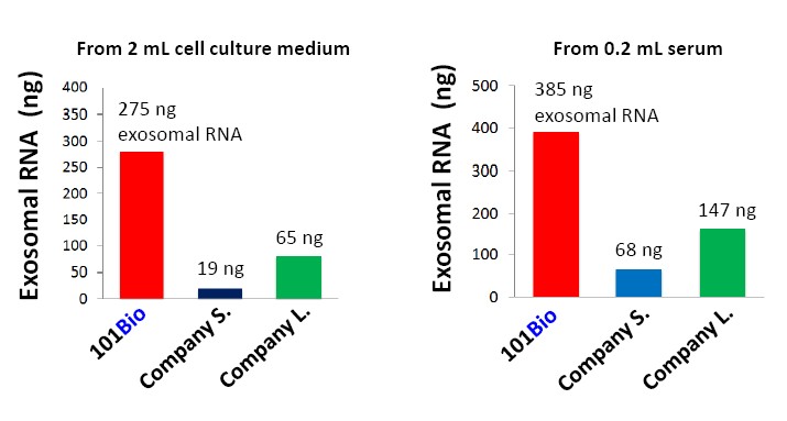 傳統(tǒng)的外泌體分離要涉及超速離心,操作繁瑣、過程冗長,所得到的外泌體純度較低。美國101Bio提供的系列外泌體分離試劑盒,可從細(xì)胞培養(yǎng)基或血清中富集大量完整的外泌體,試劑盒具有