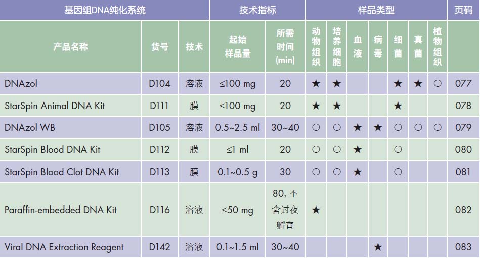高純度、完整的核酸是獲得后續(xù)實(shí)驗(yàn)成功的關(guān)鍵因素,而高產(chǎn)率對(duì)稀有樣品而言具有非常重要的意義。GenStar®公司經(jīng)過精心挑選優(yōu)質(zhì)原料,并優(yōu)化試劑配方和實(shí)驗(yàn)流程,開發(fā)了一系列用于不同樣品的溶液型和硅膠膜離心吸附柱型(Spin Column)基因組DNA提取、純化產(chǎn)品,品種齊全,適用范圍廣,快速簡(jiǎn)便,安全可靠,價(jià)格經(jīng)濟(jì)。除Magic Plant Genomic DNA Extraction Kit以外,所有試劑盒提取純化的DNA均可用于酶切、PCR、Southern blot、克隆、測(cè)序等常規(guī)分子生物學(xué)實(shí)驗(yàn)。