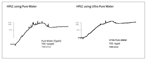 圖1 使用TOC<5 ppb的超純水進(jìn)行HPLC實(shí)驗(yàn),可到較低的背景值。