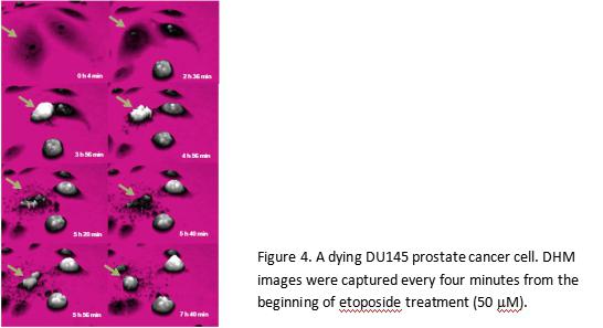 1) HoloMonitor M4體型較小,可以將其放置于細(xì)胞培養(yǎng)箱中,細(xì)胞培養(yǎng)皿中無(wú)需做其他處理,直接置于HoloMonitor M4顯微鏡,即不改變細(xì)胞培養(yǎng)的條件、同時(shí)對(duì)細(xì)胞進(jìn)行實(shí)時(shí)監(jiān)控分析,清晰區(qū)分細(xì)胞壞死和細(xì)胞凋亡,對(duì)于細(xì)胞凋亡過(guò)程中細(xì)胞的體積變小、胞質(zhì)濃縮,卷曲、核染色質(zhì)凝聚。染色體斷裂成片,最后形成凋亡小體,被吞噬細(xì)胞消化,融合等這些形態(tài)學(xué)的變化。以下是觀察前列腺癌細(xì)胞DU145的凋亡圖片。