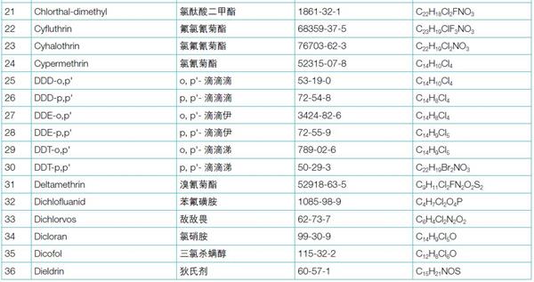 提出了 9 種有機(jī)氯農(nóng)藥殘留的檢測方法 |