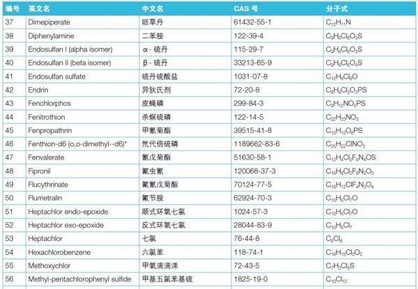 表 1. 藥典GCMSMS 方法檢測的 76 種化合物列表(* 為內(nèi)標(biāo))