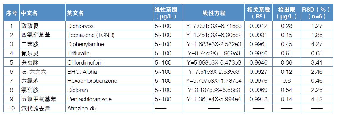 色譜柱:TR-Pesticide II(30 m*0.25 mm*0.25 μm, 帶毛細(xì)管色譜柱 5 m 預(yù)柱)毛細(xì)管色譜柱(Thermo Fisher Scientific)。