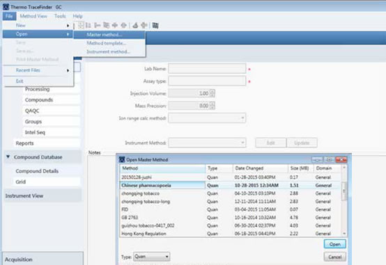 Methods 中,方法就可以直接在 TraceFinder 軟件中打開,這個方法包括數(shù)據(jù)處理方法和進(jìn)樣方法。