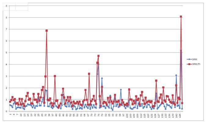 圖 4. 兩種方法的 MDLs 比較:SRM 與 FS/SRM 交替掃描