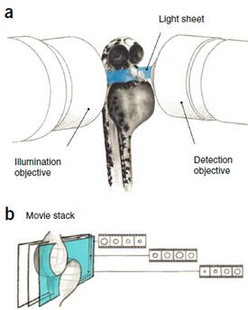1、light-sheet光片照明因其可與激光共聚焦相媲美的z軸分辨率和比激光共聚焦更快的成像速度在一些模式動物器官和胚胎的活體成像中的具有顯著優(yōu)勢。flash4.0相機(jī)的高幀速成像能力配合片狀光的掃描能夠?qū)崿F(xiàn)迅速對厚樣品進(jìn)行z-stack掃描成像,并重建其3d結(jié)構(gòu)。這種方法特別適合拍攝組織器官高速變化的情況(如心臟跳動)。