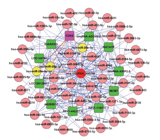 圖2:ceRNA分析揭示circRNA_100290通過CeRNA機制調(diào)控CDK6