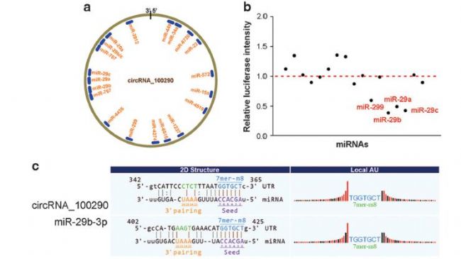 圖4:Luciferase和EGFP/RFP reporter assays驗證miR-29直接結(jié)合circRNA_100290/CDK